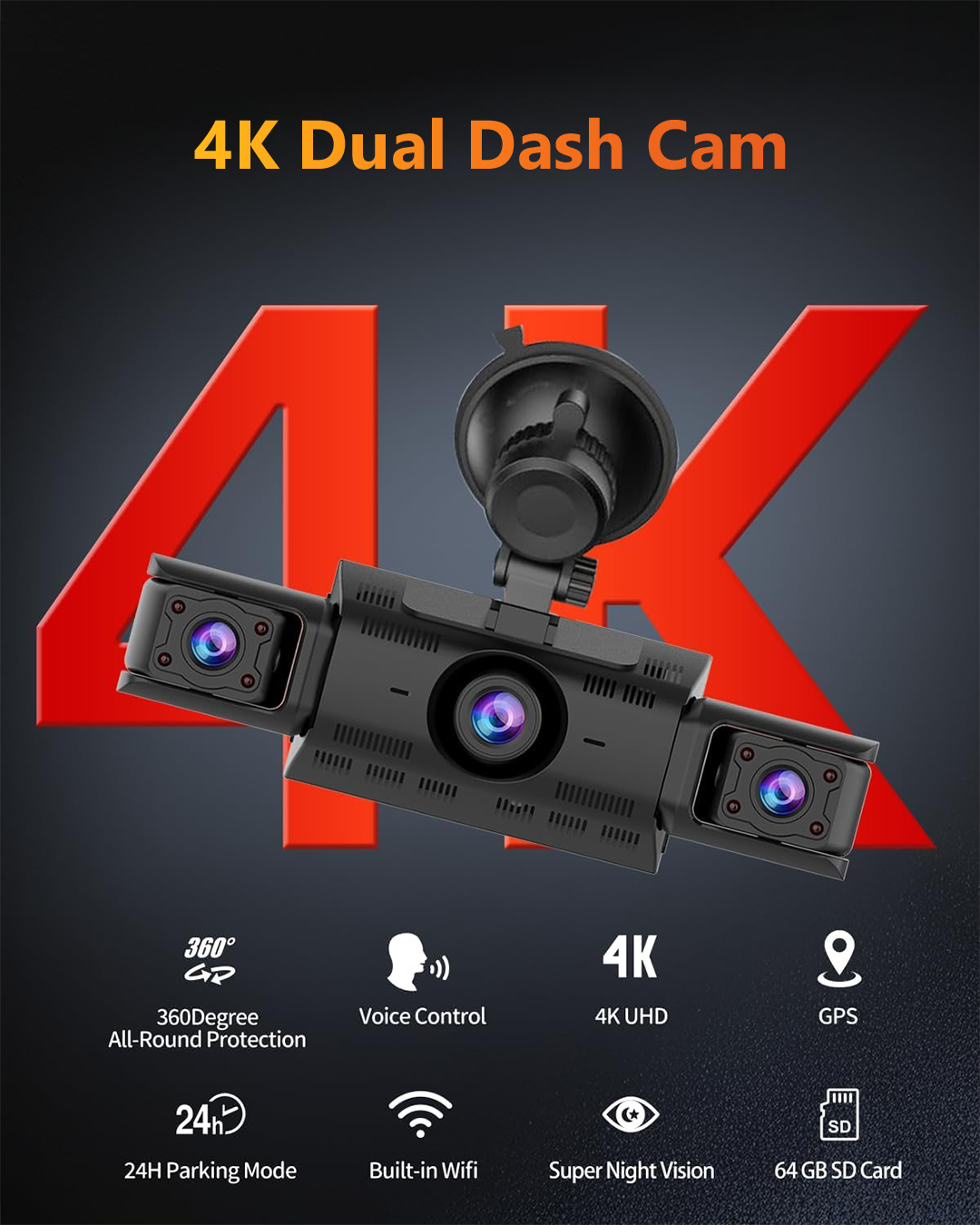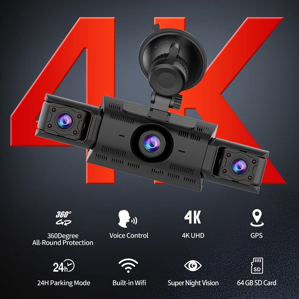 360 View 4 Channel Dash Cam Front and Rear Left Right Inside Camera for Cars, GPS and 5G Band WiFi, Night Vision, 160 Wide Angle, WDR, 24H Parking Mode